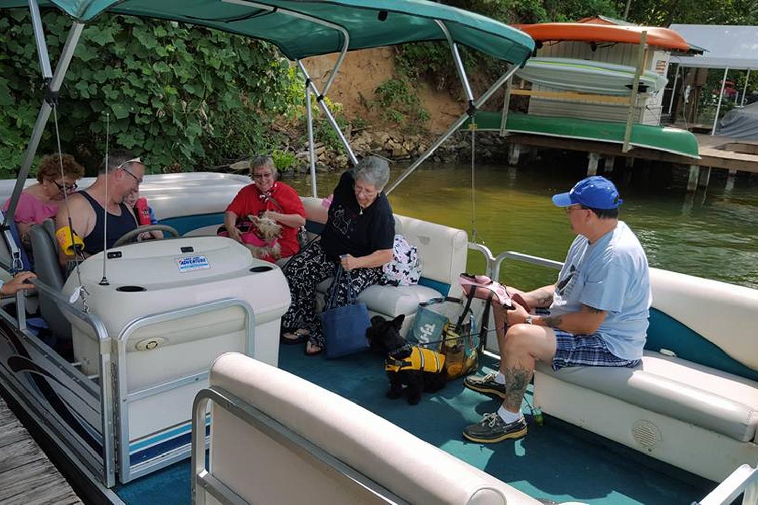 Pontoon Kayak Paddelboard Rentals on Lake Lure NC. Pontoon boats hold between seven and 10 people.